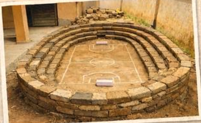 L’objectif de cette initiative était d’enseigner aux élèves la réalisation de formes complexes en briquette. En disposant les matériaux avec précision, ils ont réussi à reproduire les courbes et le design d’un véritable stade : une piste ovale entourant un terrain de football. Ce travail pratique leur a permis de développer des compétences essentielles en construction, géométrie et travail d’équipe.