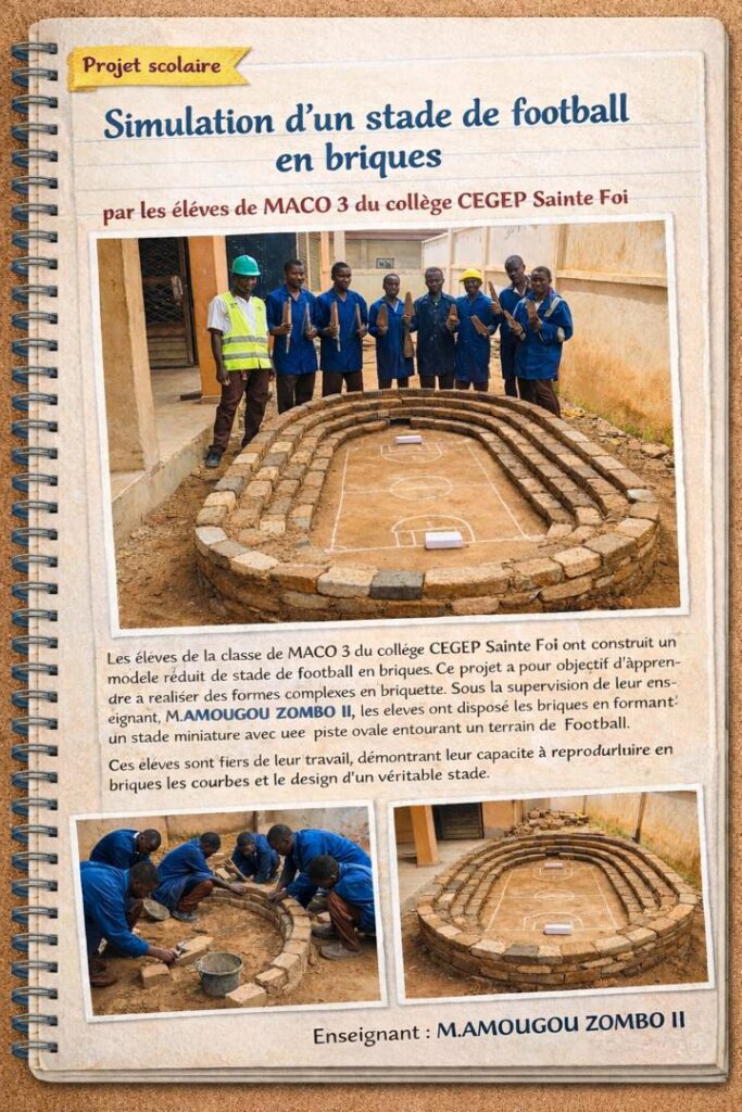 Au collège CEGEP Sainte Foi, les élèves de la classe MACO 3 ont relevé un défi aussi créatif que technique : construire un modèle réduit de stade de football entièrement en briques. Ce projet, encadré par leur enseignant M. Amougou Zombo II, illustre parfaitement la capacité des jeunes à transformer l’apprentissage en une expérience concrète et inspirante.